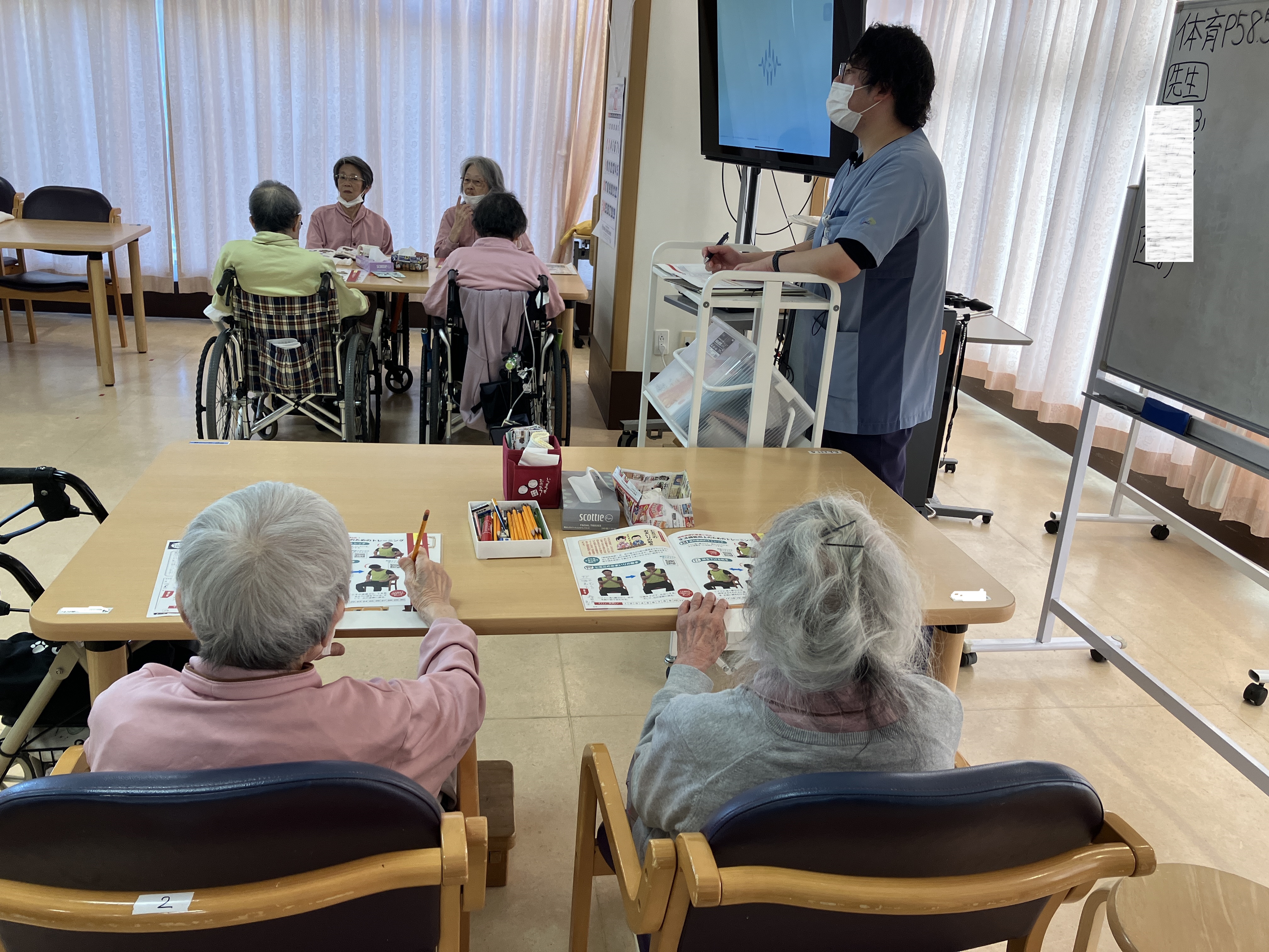 職員が先生役となり授業のような形式で行いますが、決して堅苦しいものではなく、利用者様からお話を引き出すように進めていきます。