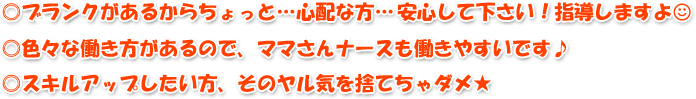 新米看護師からママさん看護師まで満足の職場環境です。 |