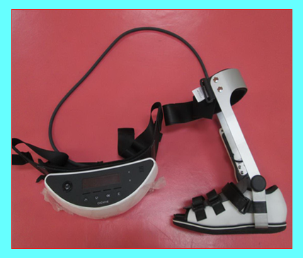 「脳卒中ガイドライン(2009 年)」において、推奨グレード B の治療法として掲載されている機能的電気刺激療法です。麻痺した足に電気刺激を行い、歩行の再建を目指します( FES :機能的電気刺激療法)。さらに筋の再教育、廃用性筋萎縮の防止、抑制、関節可動域の維持・増加、局所血流量の増加等の治療を行うこともできます( TES 治療的電位刺激療法)。